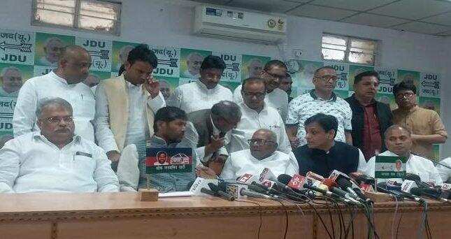 एनडीए के तीनों घटक दल के प्रदेश अध्यक्ष ने एक साथ मिल कर सीटों पर दलों की उम्मीदवारी की घोषणा की गई। सीट शेयरिंग का फॉर्मूला पहले ही तय हो गया था। जिसमें जेडीयू और बीजेपी 17-17 सीट और एलजेपी को 6 सीट देनी की बात हुई थी।