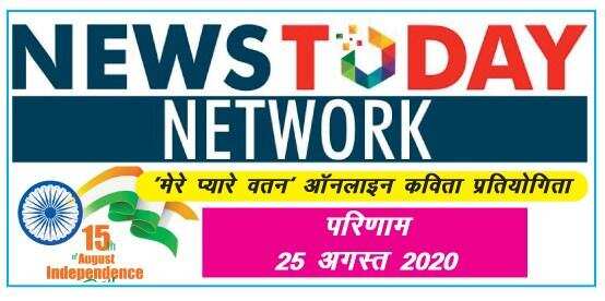 बता दें कि वेब पोर्टल न्यूज टुडे नेटवर्क की ओर से स्वतंत्रता दिवस के उपलक्ष्य में 10 से 20 अगस्त तक आॅनलाइन कविता प्रतियोगिता का आयोजन किया गया था। इसमें ‘मेरे प्यारे वतन’ विषय पर स्वरचित कविताओं को भेजना था। प्रतियोगिता के दौरान 300 से अधिक कविताएं प्राप्त हुईं। निर्णायक मंडल ने बाल वर्ग में 137 बच्चे विजेता घोषित किए हैं। साथ ही युवा वर्ग में 35 और वरिष्ठ वर्ग में 27 लोगों को विजेता चुना है।