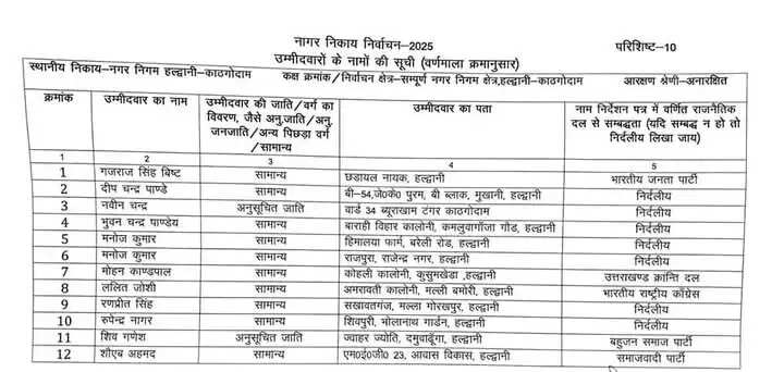 हल्द्वानी - मेयर पद पर आये हैं 12 नामांकन, तीन पार्षद प्रत्याशियों का निर्विरोध चुना जाना लगभग तय