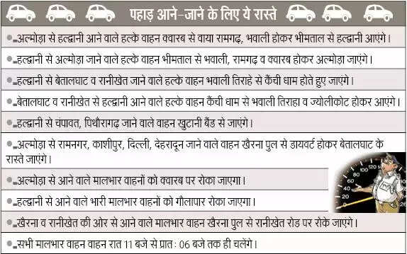 बरेली रोड से आने वाले यात्री वाहन तीनपानी से गौला बाइपास होकर नैनीताल व भीमताल-भवाली से अल्मोड़ा को जाएंगे।