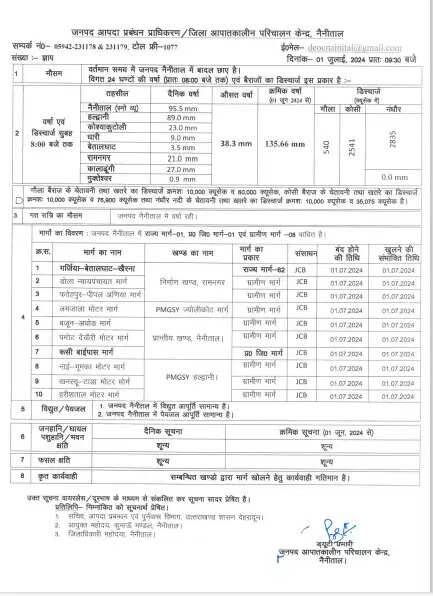 नैनीताल - जिले में बारिश से कई जगहों पर जन जीवन हुआ अस्त - व्यस्त, पहाड़ जाने वाले यह 10 रास्ते बंद