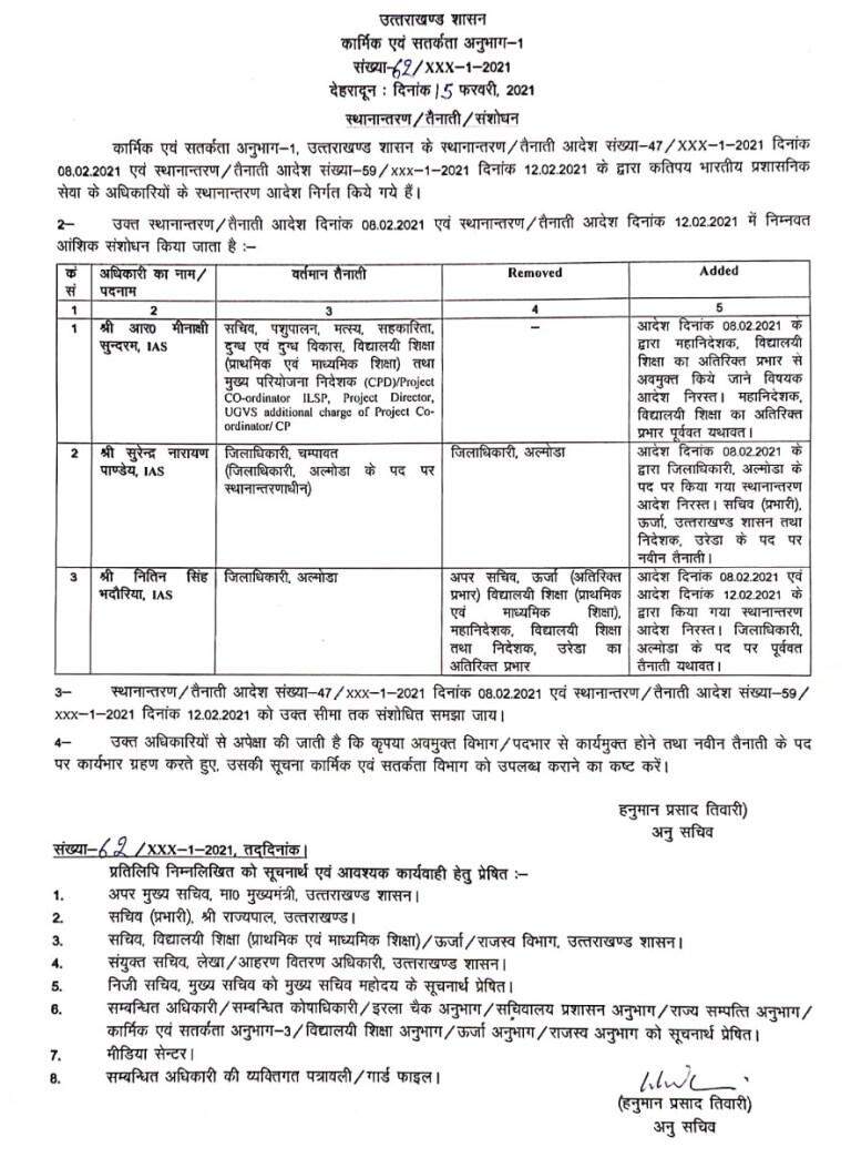 देहरादून-तीन आईएएस अधिकारियों का तबादला, इस जिले के जिलाधिकारी की वापसी