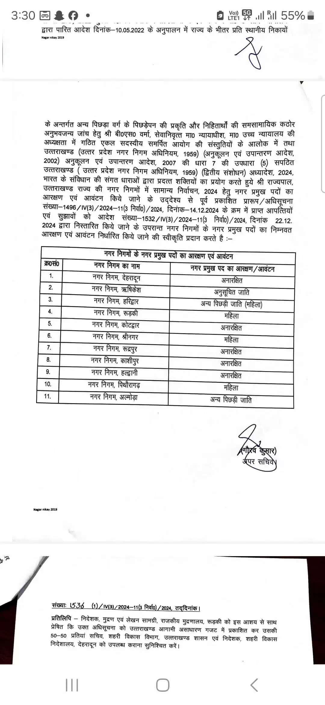 हल्द्वानी - बड़ी खबर, मेयर सीट हुई अनारक्षित, पढ़िए आदेश