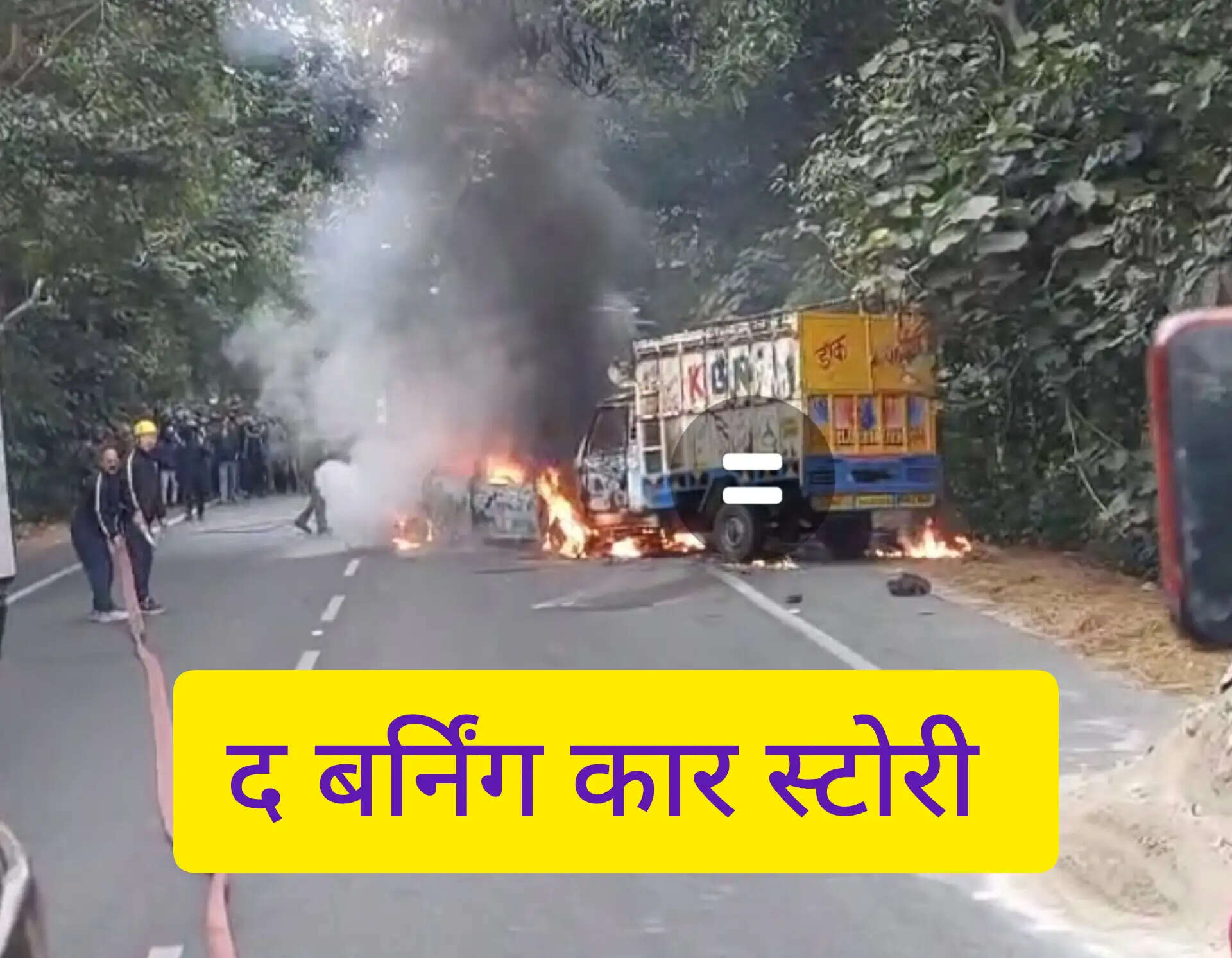हल्द्वानी- रुद्रपुर रोड पर सड़क हादसे में द बर्निंग कार स्टोरी , देखते रह गए राहगीर