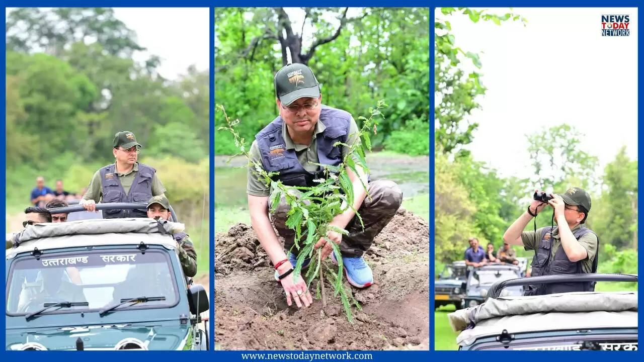 रामनगर - कार्बेट नेशनल पार्क में सीएम धामी ने की जंगल सफारी, एक पेड़ माँ के नाम अभियान में हुआ 1000 पौधों का रोपण