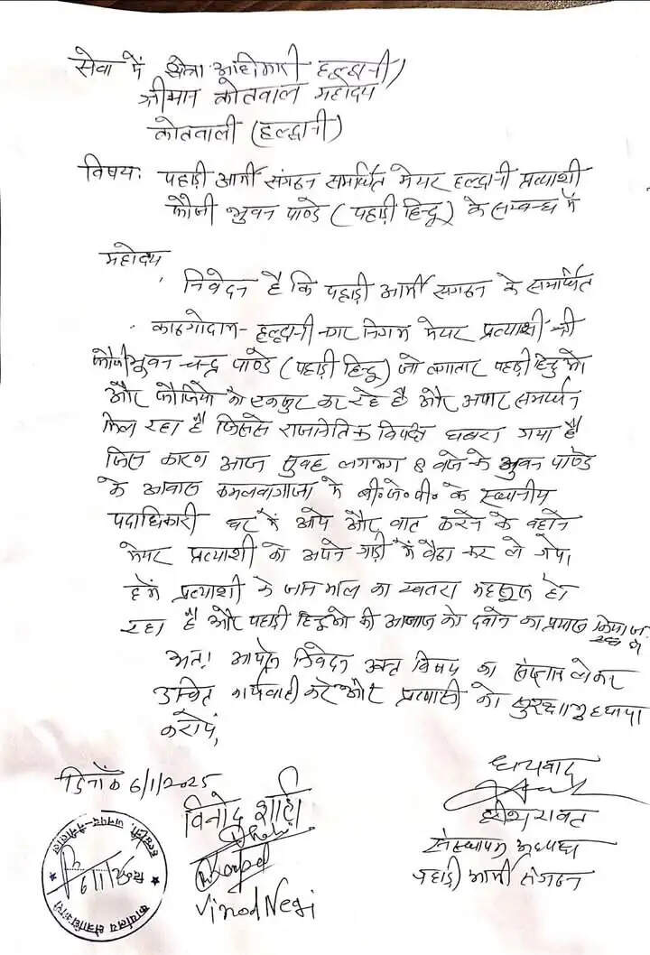 हल्द्वानी - पहाड़ी आर्मी के समर्थित निर्दलीय मेयर प्रत्याशी के अपहरण का आरोप, कोतवाली पहुंचे पार्टी कार्यकर्ता