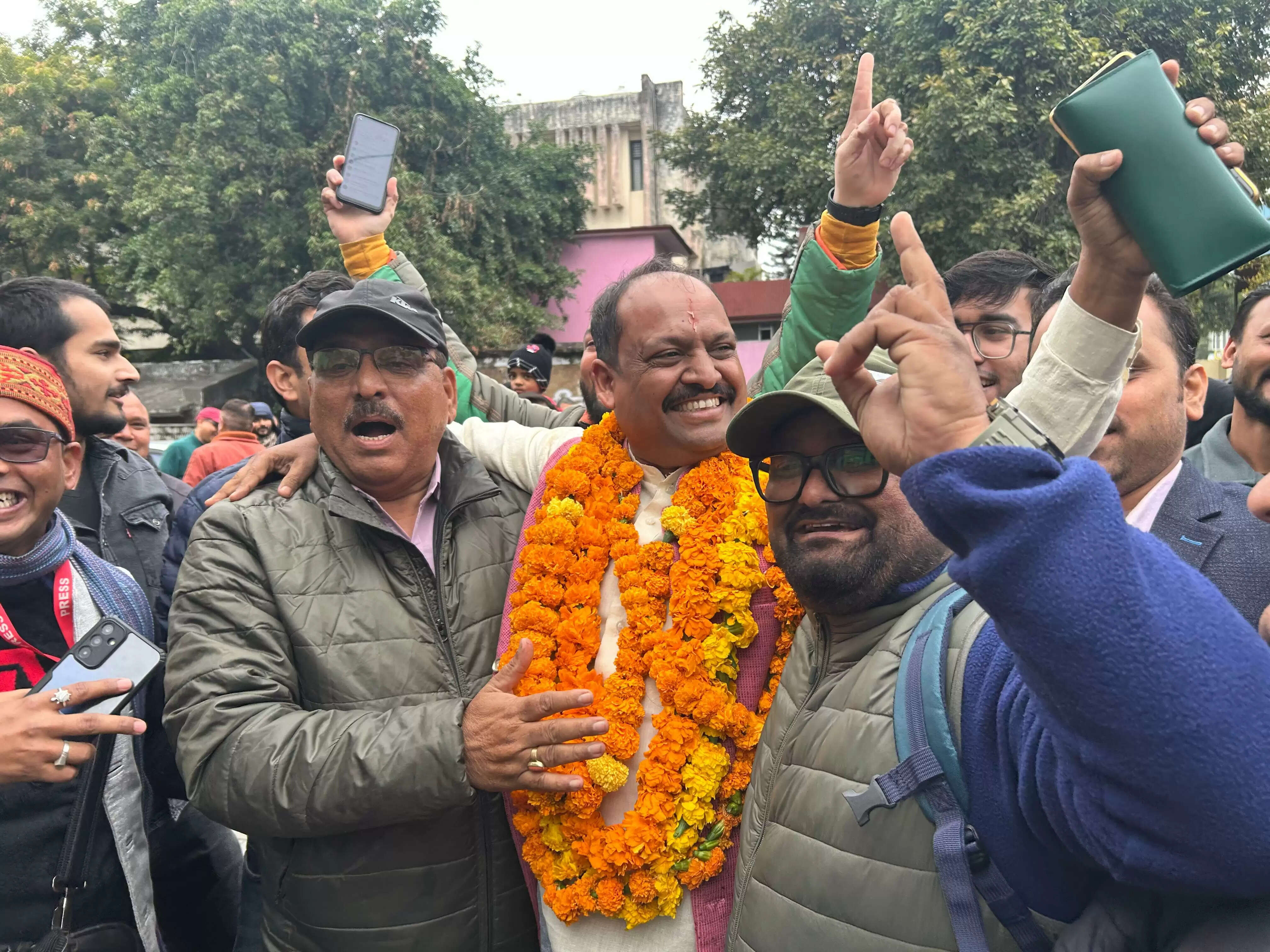 भारतीय जनता पार्टी के मेयर पद के प्रत्याशी गजराज बिष्ट ने पार्टी के वरिष्ठ नेताओं के साथ मिलकर शक्ति प्रदर्शन किया और एसडीएम कोर्ट पहुंचकर नामांकन पर्चा दाखिल किया। भाजपा ने देर रात ही गजराज बिष्ट के नाम पर मोहर लगाई है। काफी कशमकश के बाद भाजपा ने यह टिकट गजराज के नाम का दिया है। वही गजराज का कहना है कि पार्टी में सभी नेता एकजुट है और एक-एक कार्यकर्ता उनका चुनाव लड़ने के लिए आतुर है। वहीं कांग्रेस प्रत्याशी के नामांकन में जहां सारे नेताओं में एकजुटता दिखाई दी। तो वहीं दूसरी तरफ भाजपा में कई टिकट के दावेदार नामांकन में नहीं रहे। हालांकि भाजपा की वरिष्ठ नेता और सांसद अजय भट्ट, बंशीधर भगत सहित जिला अध्यक्ष और पूर्व मेयर सहित सभी को एकजुट रहने की बात कही।